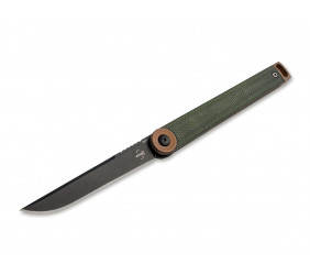 Klinga ze stali węglowej, laminowanej, 3-warstwowej. Rękojeść z brzozy, full tang. Długość całkowita 218mm, długość klingi 111mm. Design: Helle, 2009